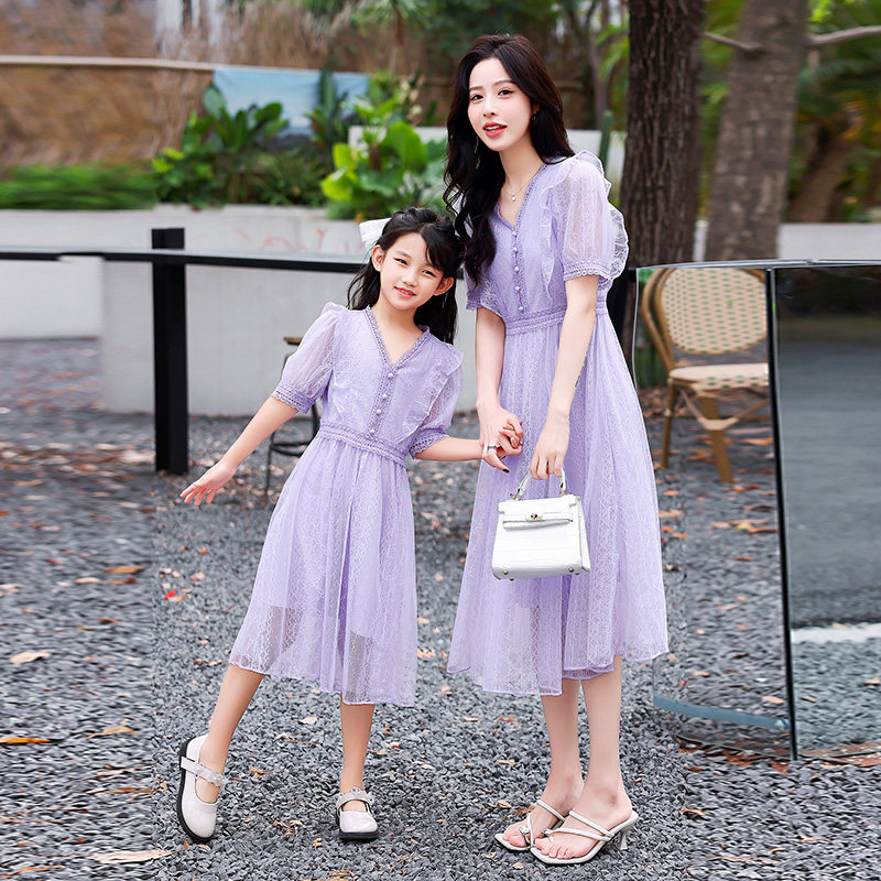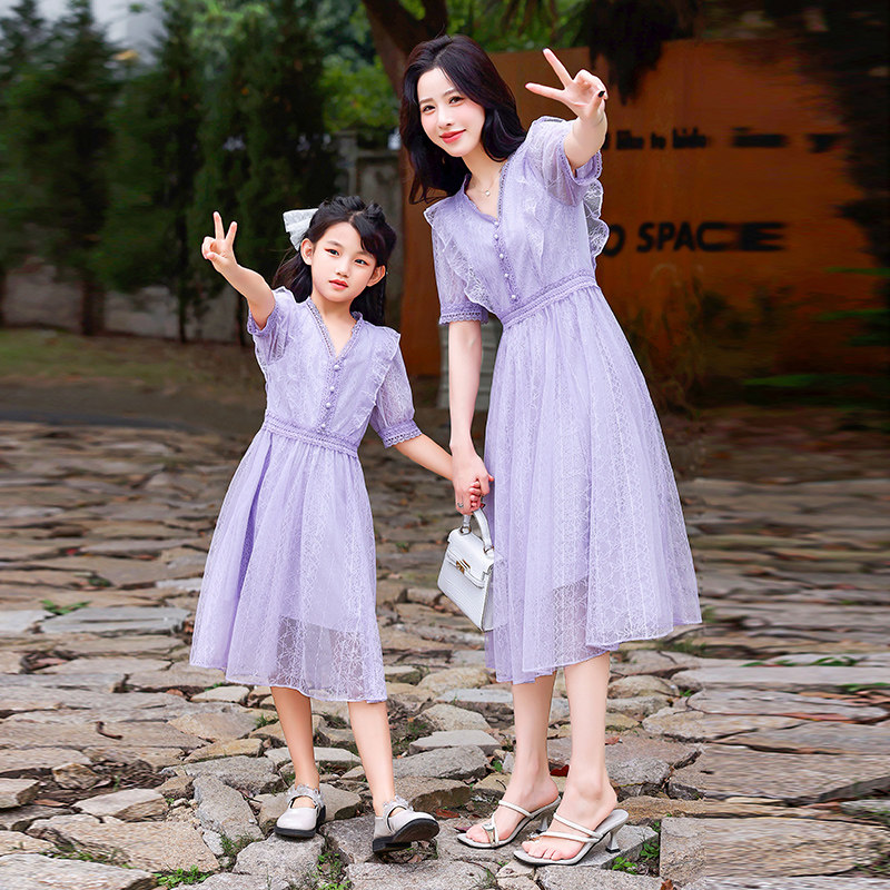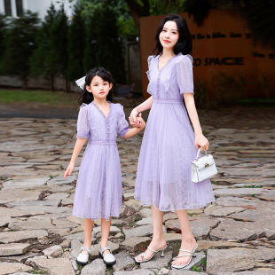 连衣裙夏款 炸街亲子装 夏季 母女装 海边度假沙滩裙网红洋气高端 夏装