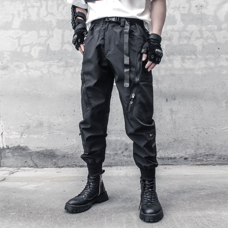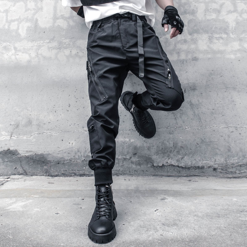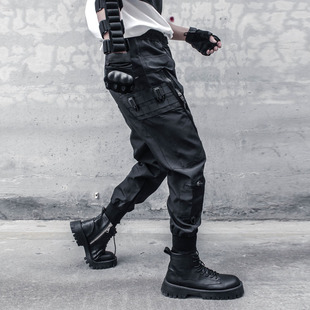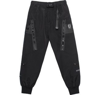 多口袋潮流伞兵束脚搭扣腰带休闲长裤 裤 工装 暗黑机能风拉链战术裤