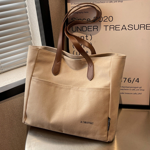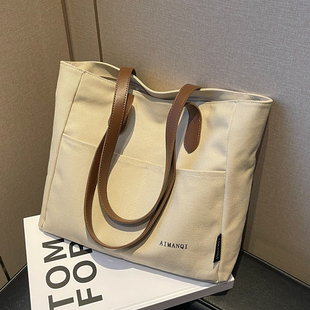 简约大容量帆布包包女2025新款 学生上课单肩包休闲上班通勤托特包