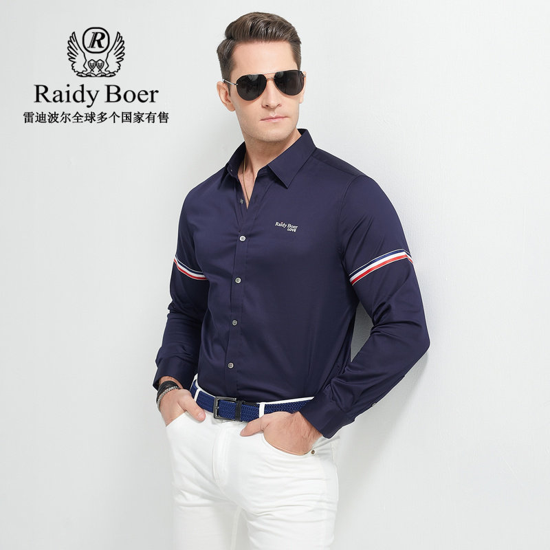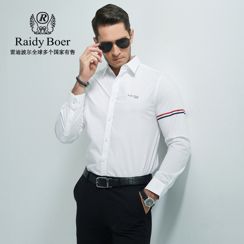 衬衫 Raidy 织带方领棉氨长袖 雷迪波尔男春烫印图案修身 9004 Boer