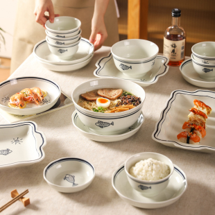 川岛屋日式 饭碗汤碗面碗菜盘子碗碟 釉下彩餐具陶瓷碗家用2026新款
