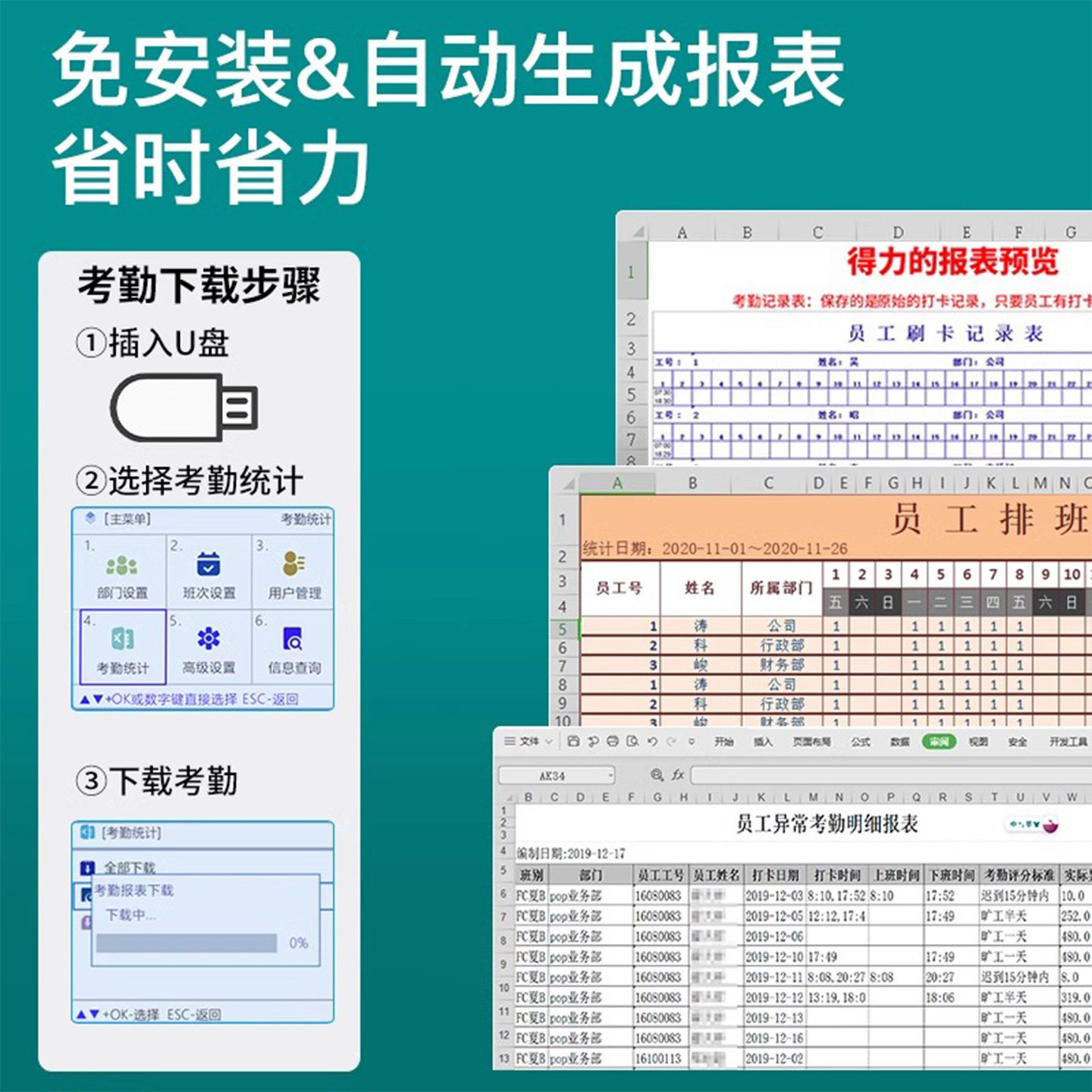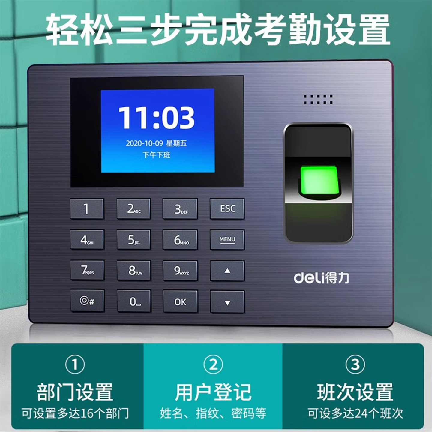 得力3960S指纹考勤机员工上下班打卡一体机智能识别签到器打卡机