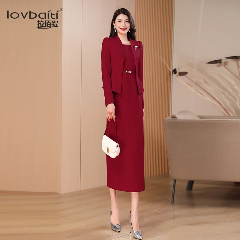 长裙两件套923 高级感气质妈妈红色套装 喜婆婆婚宴装 女秋2024新款