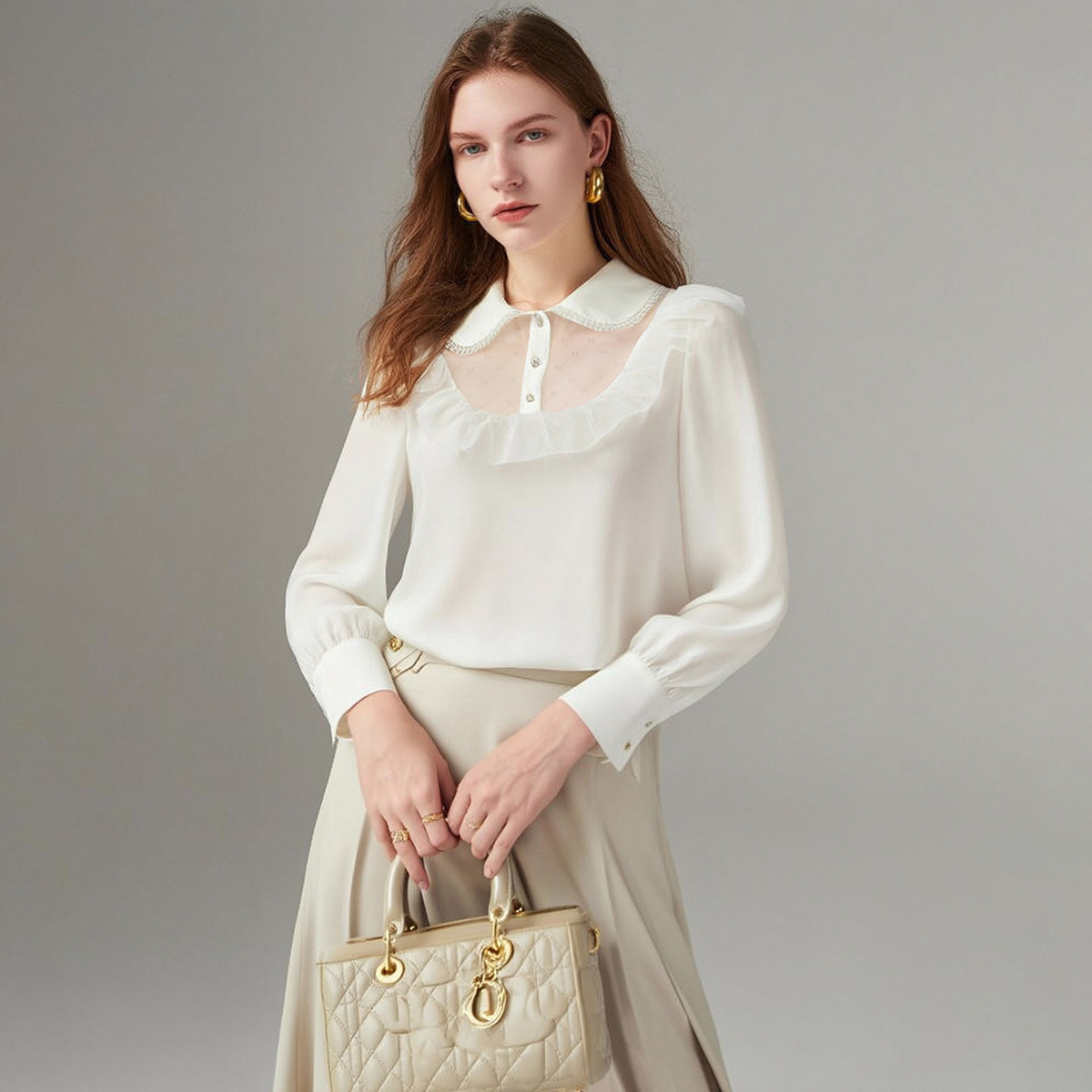 网纱镂空串珠翻领荷叶边衬衫 春季 016琳 栖 699西湖阁老