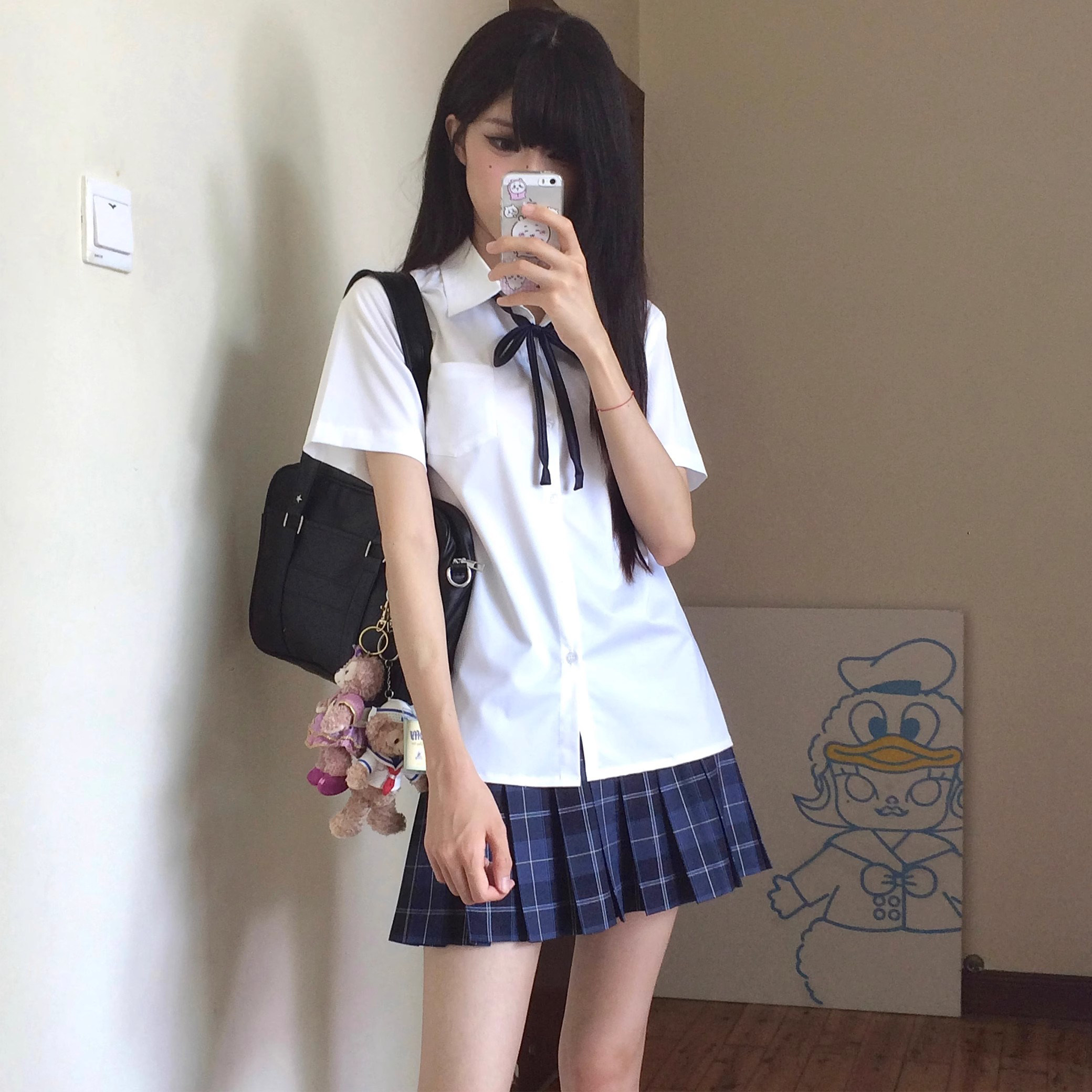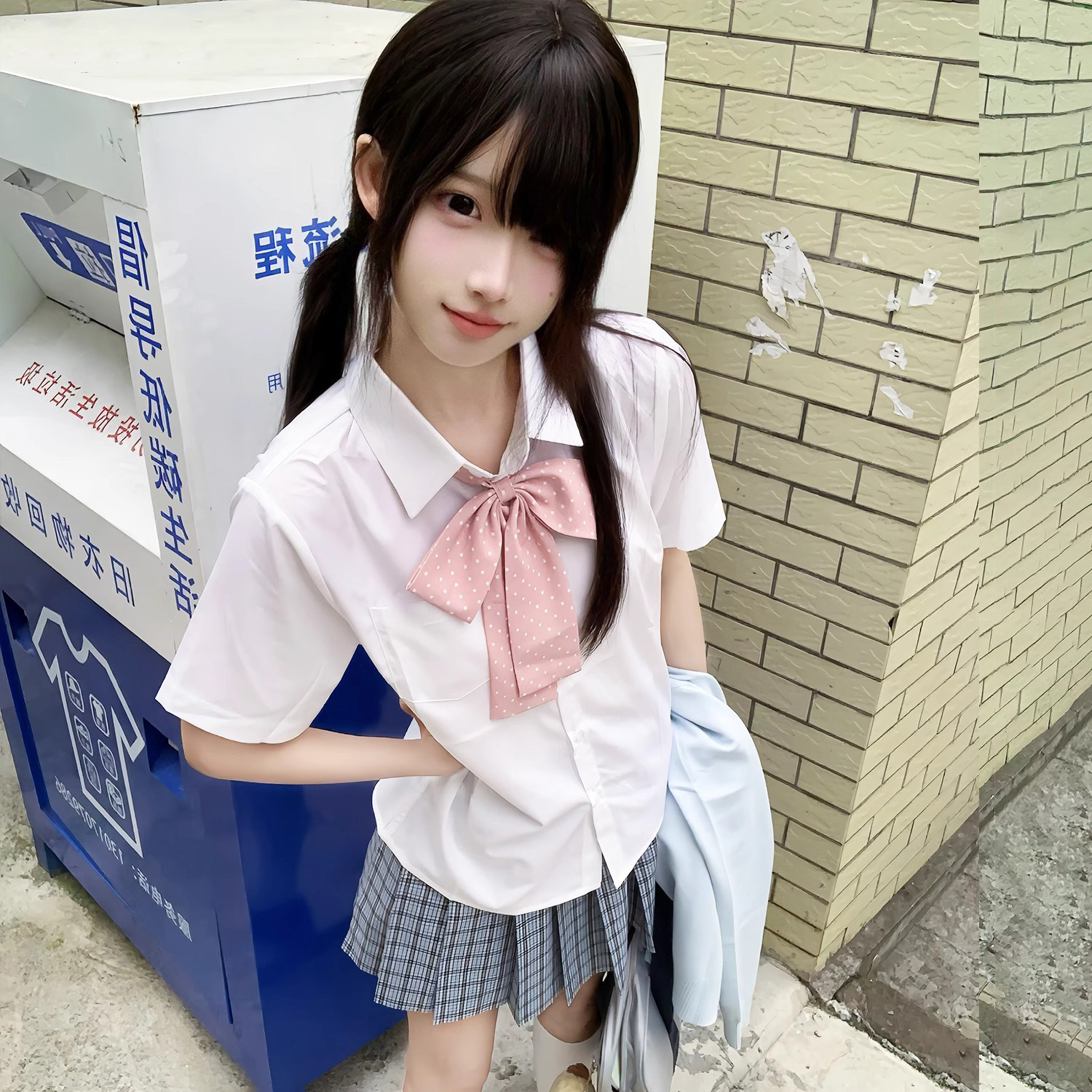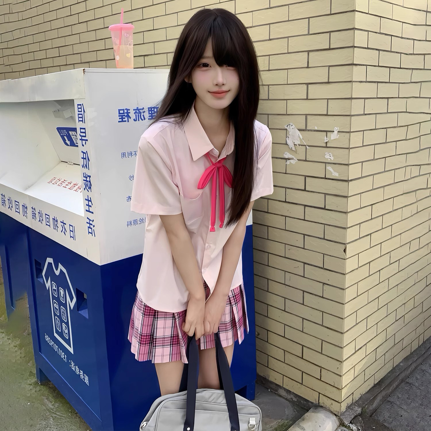 日系学院风校供感显瘦上衣女学生宽松 制服白色粉色新款 jk短袖 衬衫