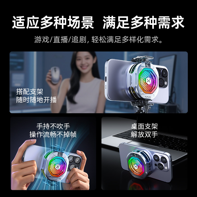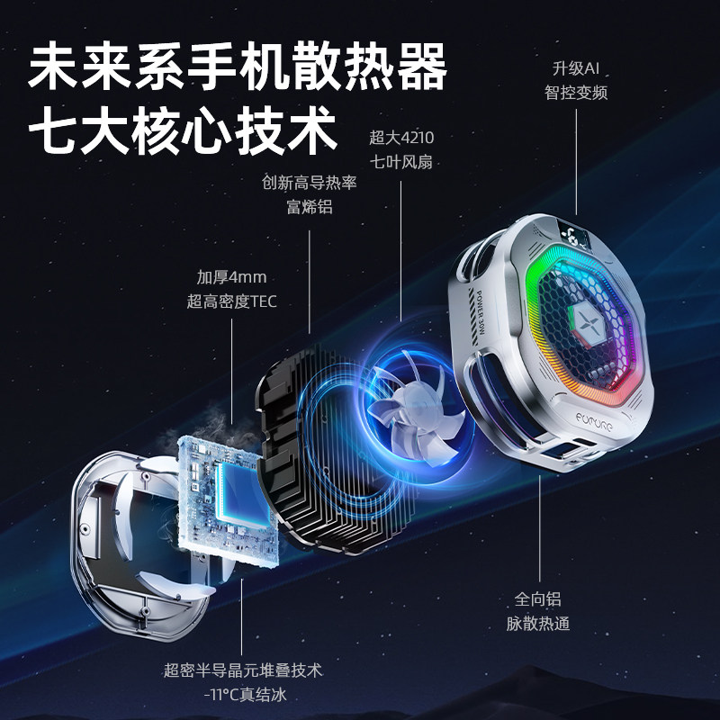 未来系2025新款 手机制冷散热器降温神器FX6强磁吸半导体制冷真结冰适用小米苹果iqoo一加手机游戏直播专用