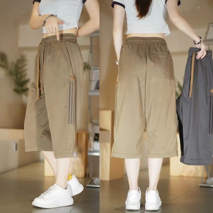 束脚休闲阔腿小个子卫裤 加绒棉裤 女秋冬2025新款 灰色羊羔绒运动裤