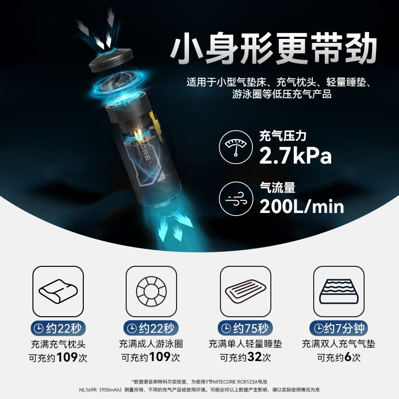 云杉高能涡喷豆TurboBean气垫背包艇泳圈户外露营迷你充气抽气泵