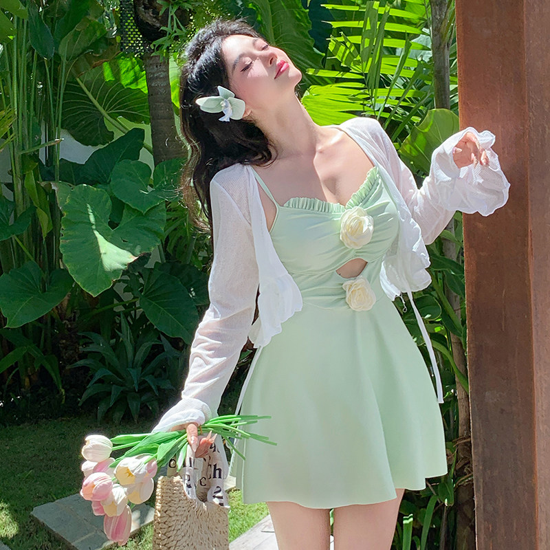 泡温泉保守连体泳衣女 高级感微胖遮肚肉显瘦罩衫 徐苏苏 2025新款