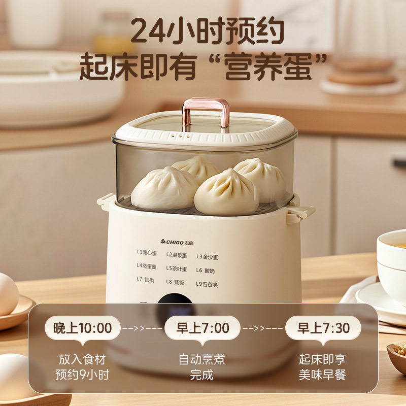 Chigo志高新款 蒸蛋器家用小型多功能煮鸡蛋智能预约早餐机料理锅