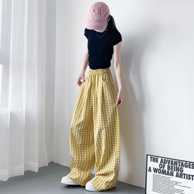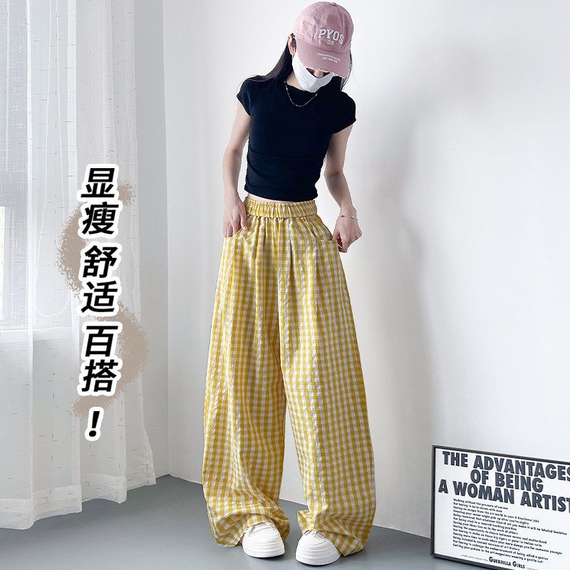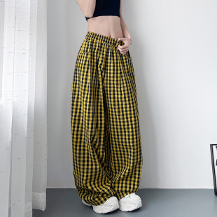 子 宽松胖mm显瘦慵懒松弛防晒跳舞弯刀阔腿裤 格子山本裤 女透气大码