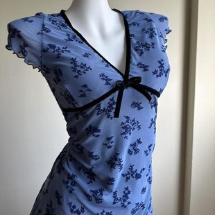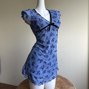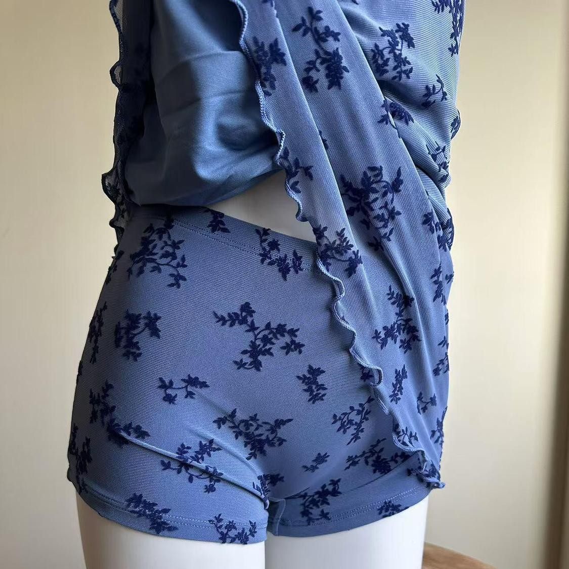泳衣显瘦遮肚分体平角裤 复古V领碎花裙式 保守温泉游泳衣 暗香