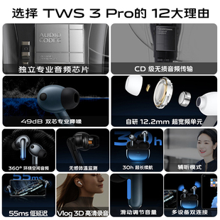 Air3真无线蓝牙耳机半入耳式 TWS 音乐游戏运动AI降噪 iQOO vivo