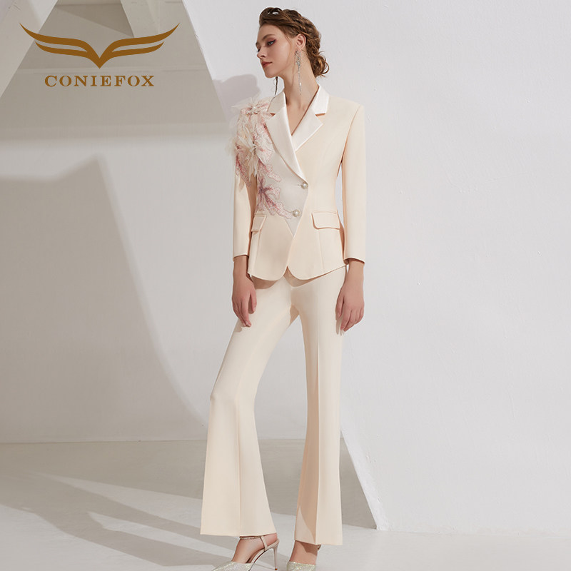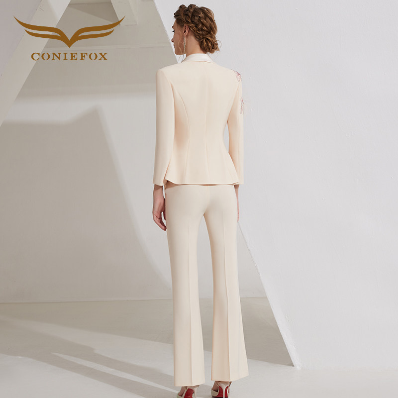 长袖 女时尚 通勤气质重要场合宴会两件套春 礼服职业套装 创意狐西装