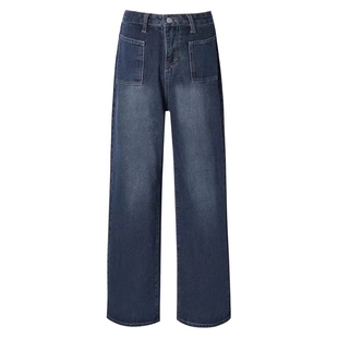 复古新款 牛仔裤 女显瘦遮胯直筒裤 特大码 裤 美式 宽松阔腿长裤 子 女装