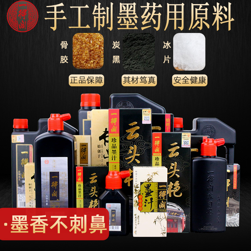 一得阁练习墨汁墨水书法书画专用大瓶学生云头艳精致墨汁大桶国画100g250g500g1000g2000g油烟墨毛笔隶篆草行