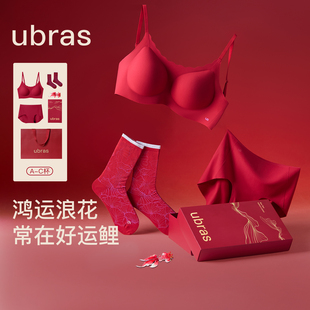 女结婚送礼 礼盒红色文胸内裤 ubras大红盒新款 马年本命年内衣套装