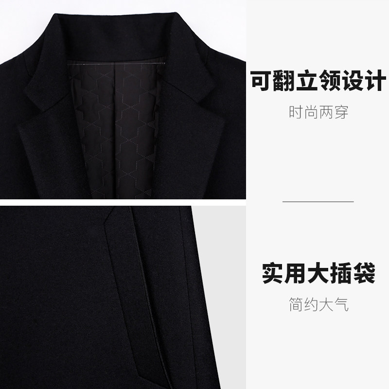 韩版 秋冬季 中长款 毛呢大衣男士 高级感风衣保暖加厚呢子外套 新款