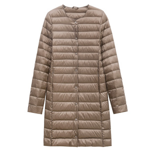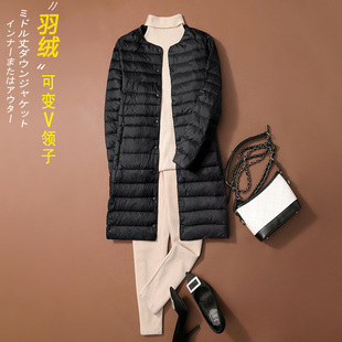 圆领长款 2022秋冬新款 外套无领可变V领内胆 羽绒服女中长款 轻薄款
