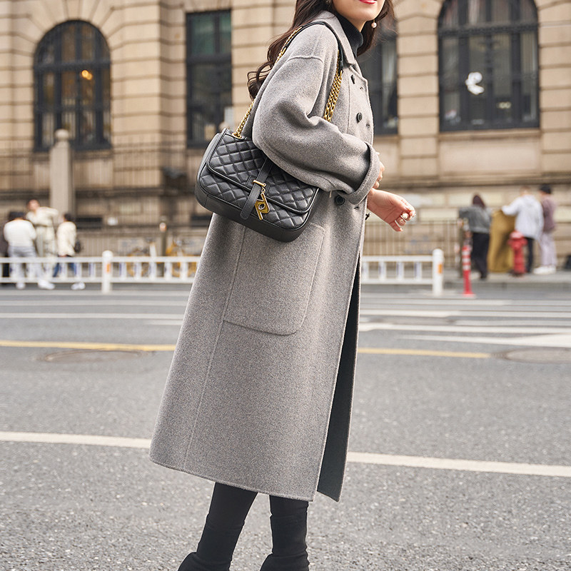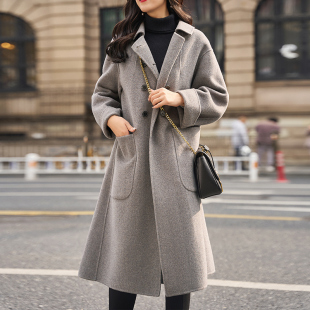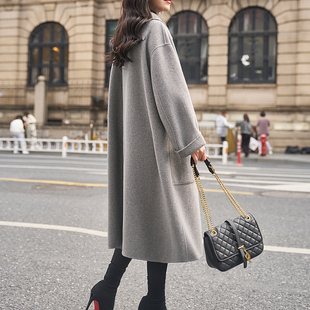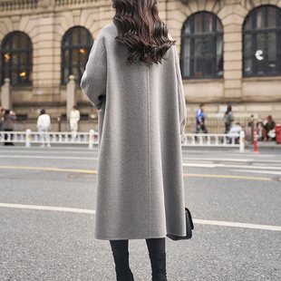 慵懒风双面羊毛大衣女中长款 灰色毛呢外套高级感