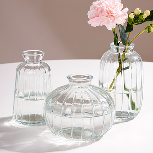 玻璃花瓶透明水培富贵竹百合北欧插花客厅餐桌创意摆件 三件套