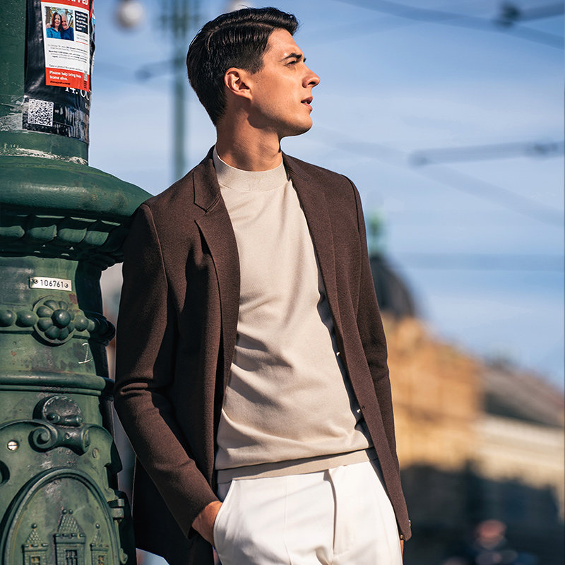 外套 男软糯保暖翻领开衫 MrBu布先生巴素兰羊毛衫 易打理针织西装