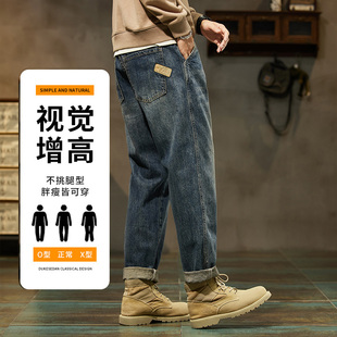 子宽松cleanfit痞帅休闲直筒长裤 男秋冬潮牌加绒阔腿裤 牛仔裤 美式