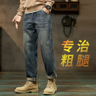 宽松直筒阔腿裤 新款 男士 加绒加厚弯刀牛仔裤 复古潮牌高端 2024冬季