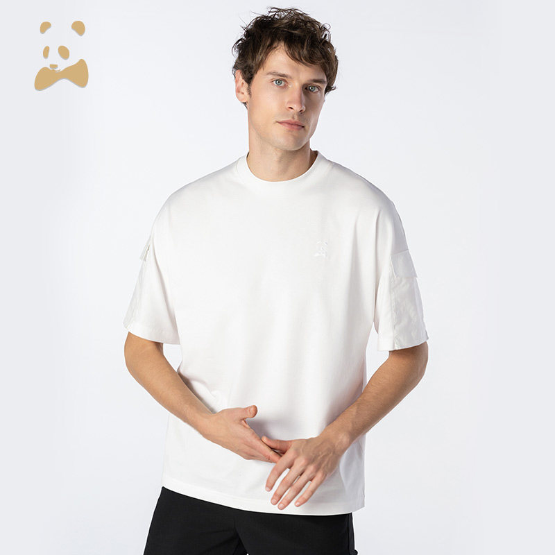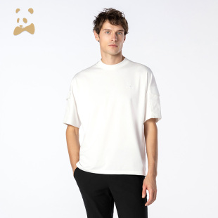 熊猫口袋纯白T恤时尚 新品 棉T 卡奴迪路夏季 CANUDILO