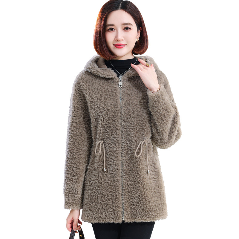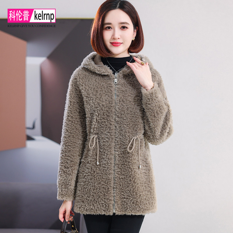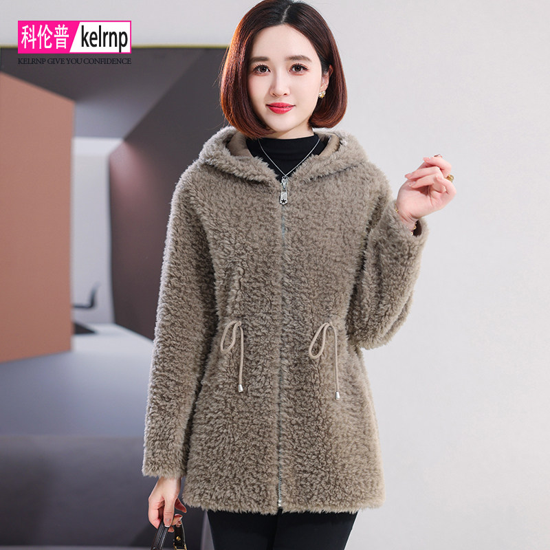 羊剪绒大衣女2026冬新中长款 连帽系带减龄海宁羔羊毛颗粒皮草外套