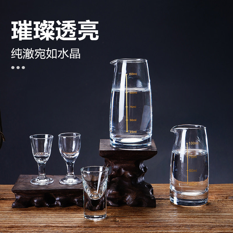 亚克力架白酒杯套装 六壶六杯白酒分酒器一口杯酒具无铅玻璃金刻度
