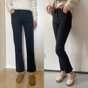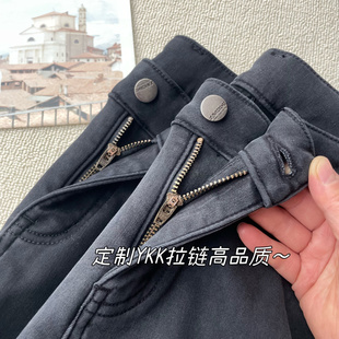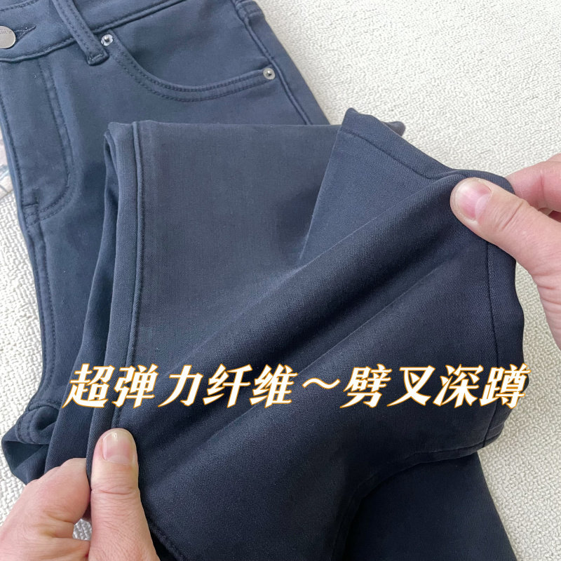 女 弹力牛仔裤 大长腿 高端欧货高腰加绒保暖锁温显瘦9分烟管喇叭裤