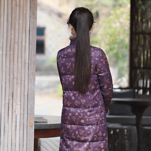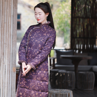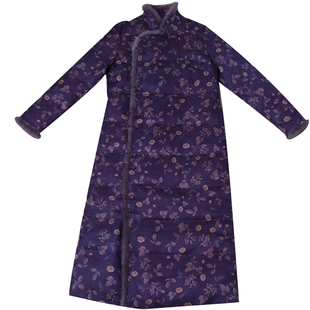 时光不语 加厚改良旗袍水貂毛 40姆米重缎香云纱羽绒服白鹅绒中式