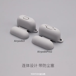 耳机保护套挂绳AirPodsPro2代 typec连体硅胶软壳AirPods2灰色一体式 适用于苹果AirPods3 4代耳机保护套降噪版