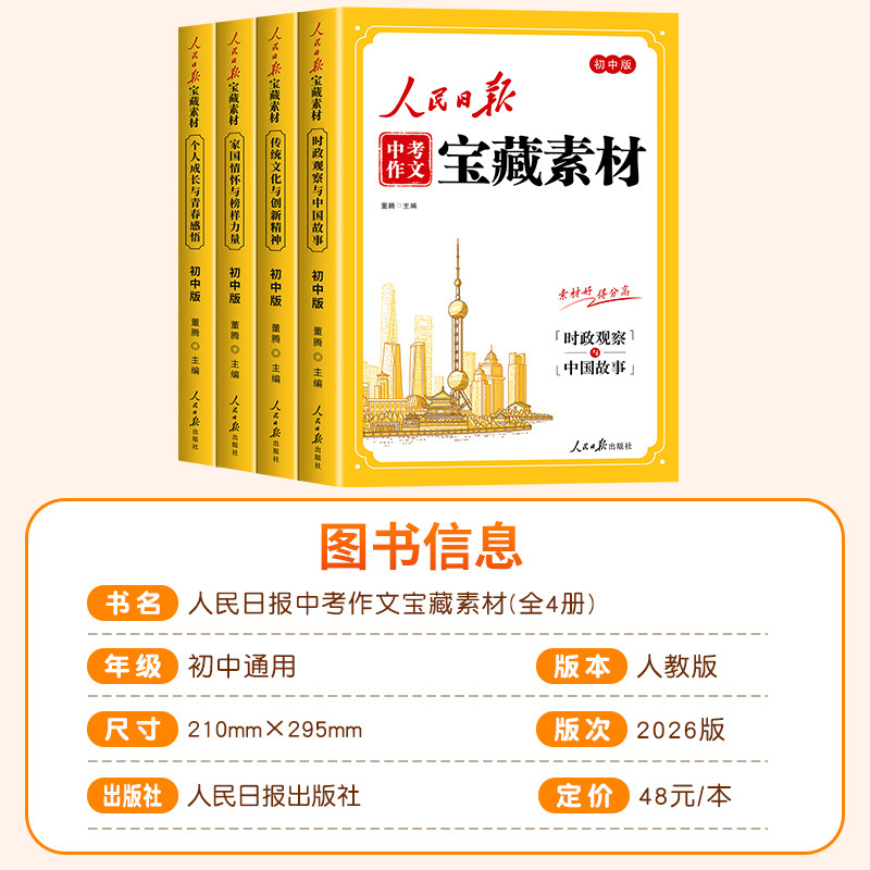 初中版 人民日报中考作文宝藏素材 作文金句与时文阅读人民日报出版 社最新 2026时政热点与家国情怀中考作文素材大全 版 2026新版