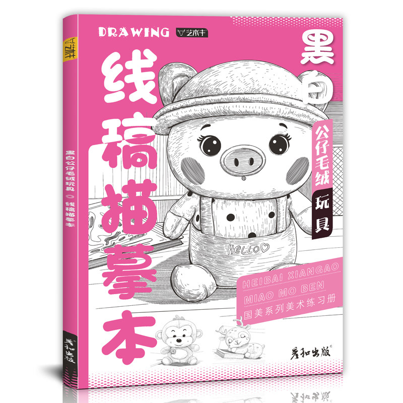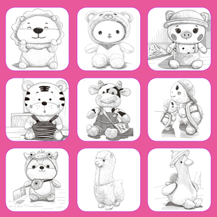 黑白公仔毛绒玩具线稿描摹本控笔训练儿童插画素材临摹画册教程书线描手绘画画素描填色涂色新手入门铅笔简笔画小学生美术培训教材