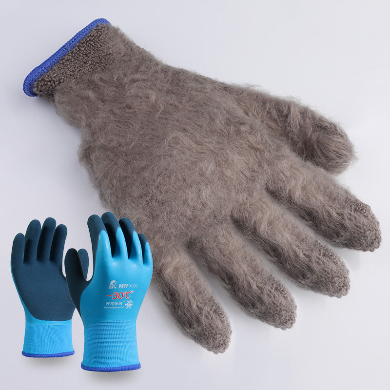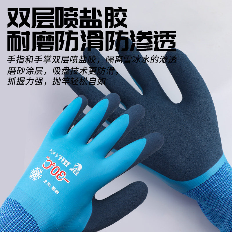 劳保手套冬季 保暖加绒加厚防水工作耐磨防滑冷库钓鱼水产开司米绒