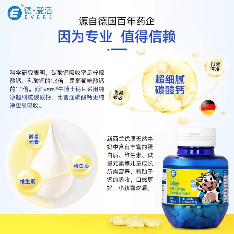 德国进口Evers牛博士儿童成长牛乳钙片中小学生补钙3岁以上6到12