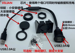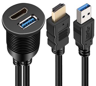 面板USB双口防水数据信号延长线 C板端RJ45连接器 HDMI高清Type