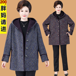 奶奶 200斤胖妈妈洋气时尚 中老年女春秋冬装 毛呢外套特加肥加大码