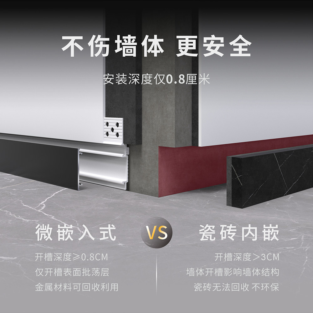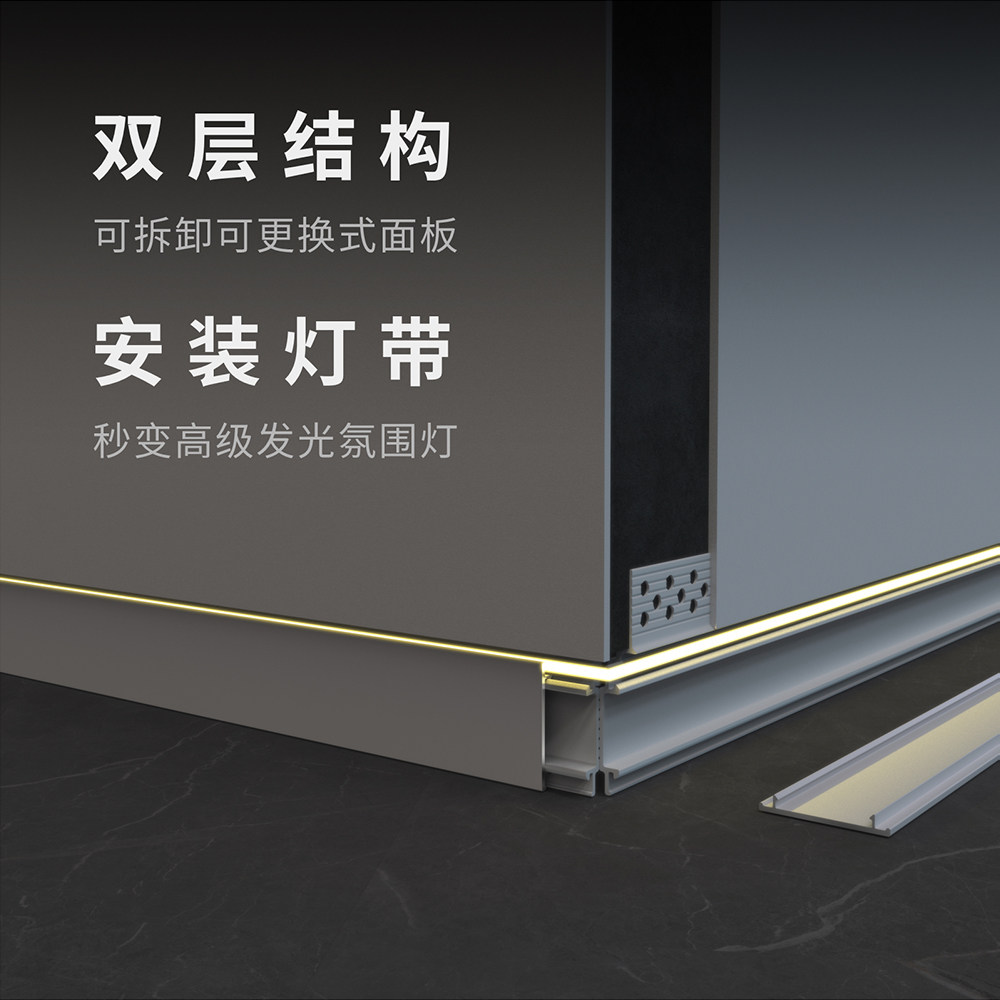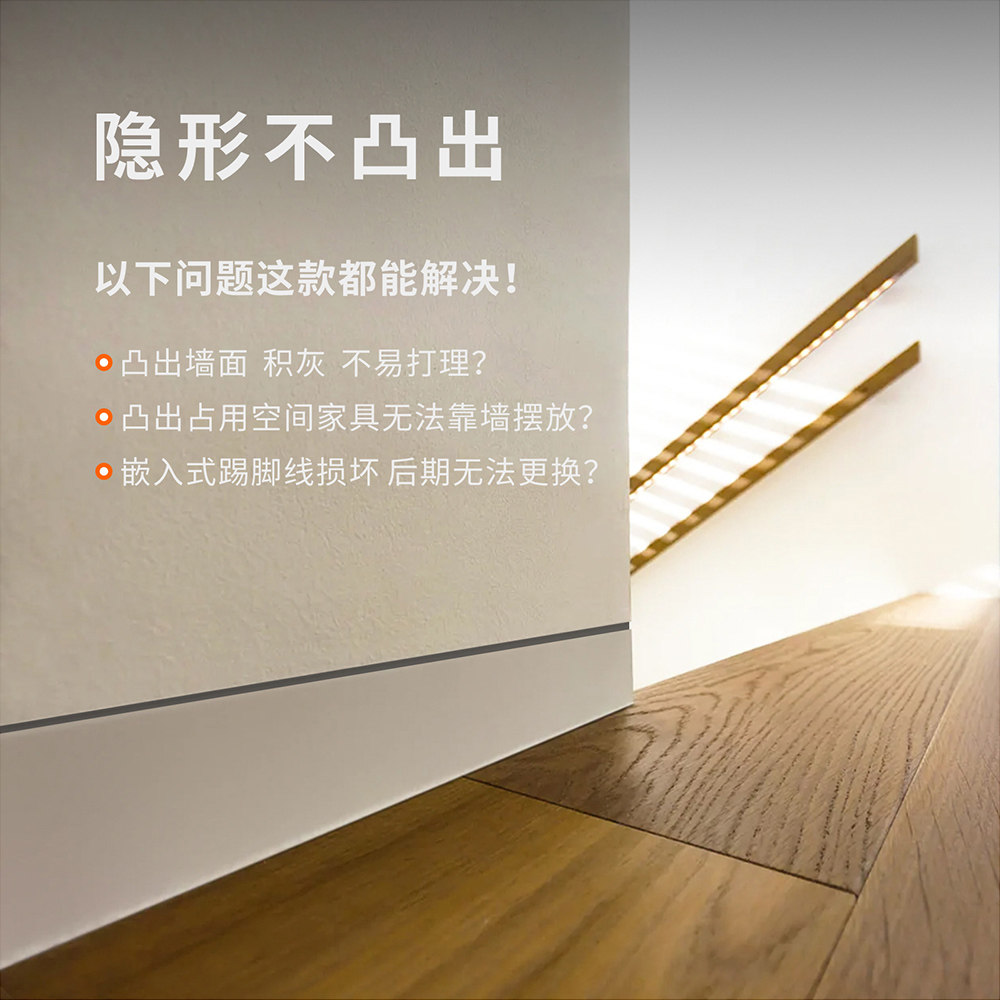 铝合金踢脚线卡扣式 全铝贴脚线条6cm8cm不锈钢超薄极简金属地脚线