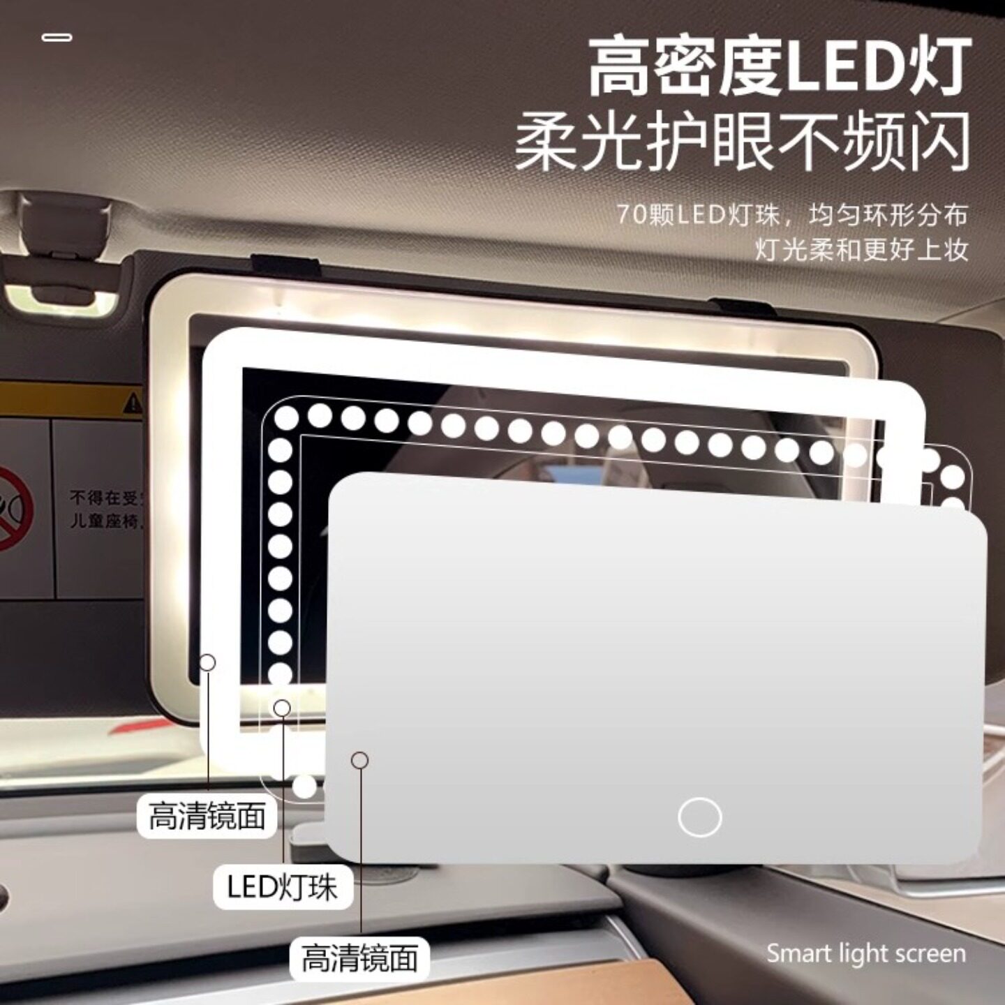 汽车遮阳板化妆镜LED灯l防碎内饰用品高清镜面带灯便携副驾驶补妆