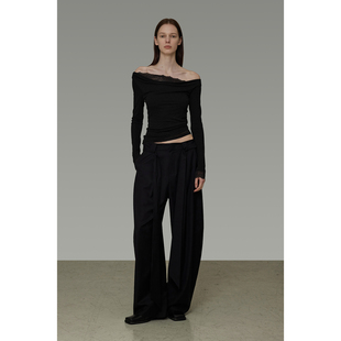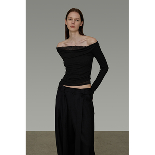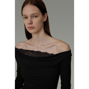 简约高级感修身 新款 上衣 女2026春季 UNSPOKEN蕾丝拼接一字肩针织衫