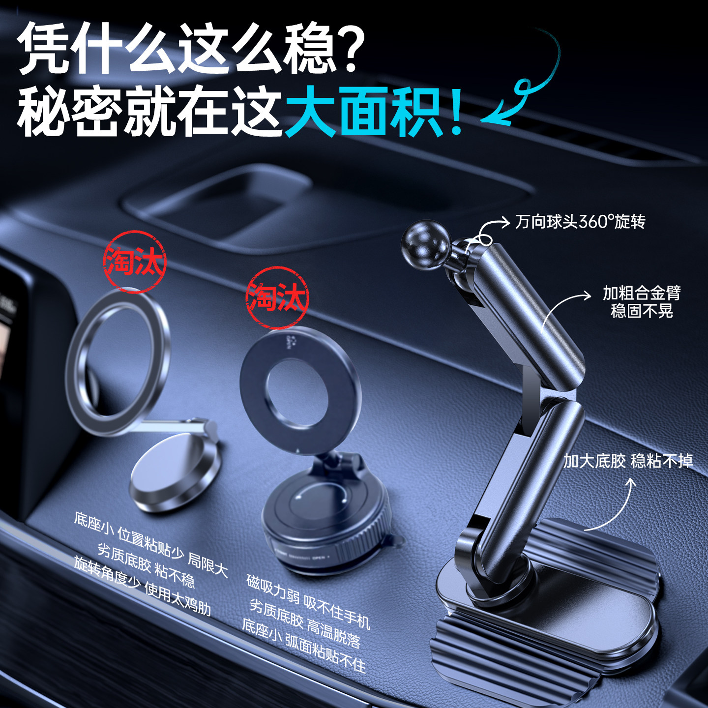车载手机支架底座17mm通用球头旋转中控仪表台粘贴金属汽车通用