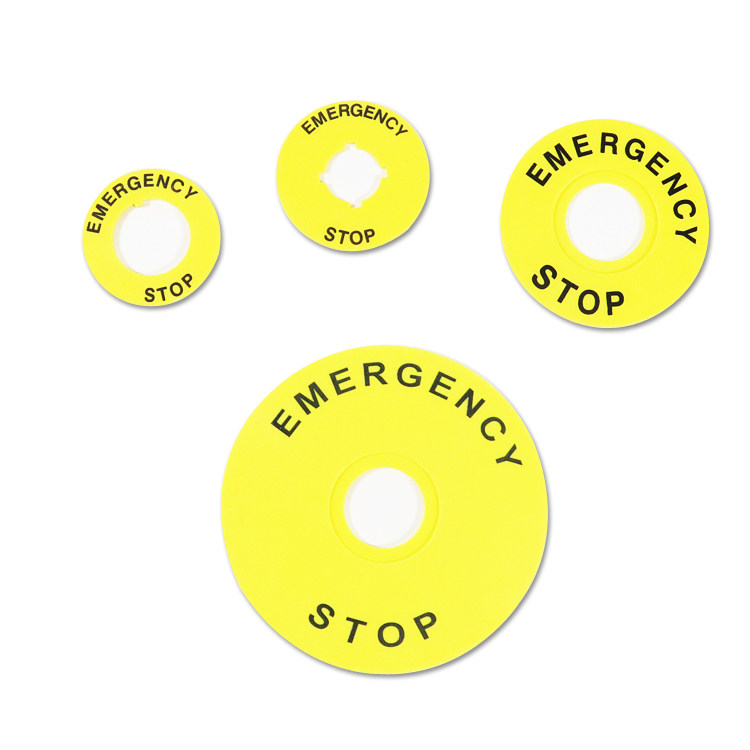 22mm急停按钮标牌框黄色警示圈带STOP按钮紧急停止标识EMERGENCY
