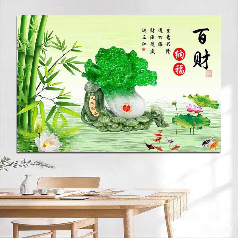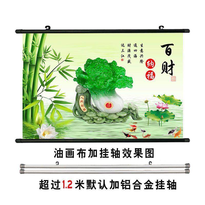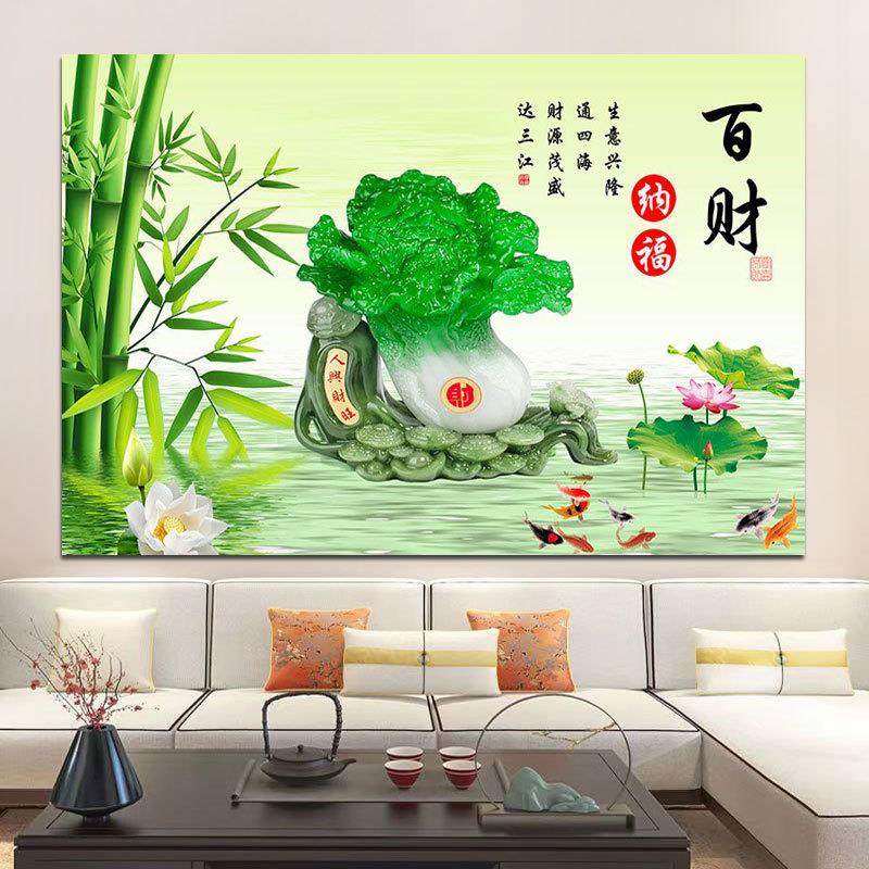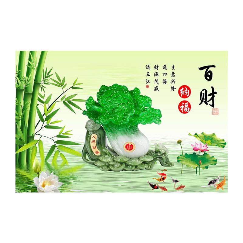 百财纳福人兴财旺玉白菜贴画九鱼荷花竹子旺宅风水画玄关客厅挂画