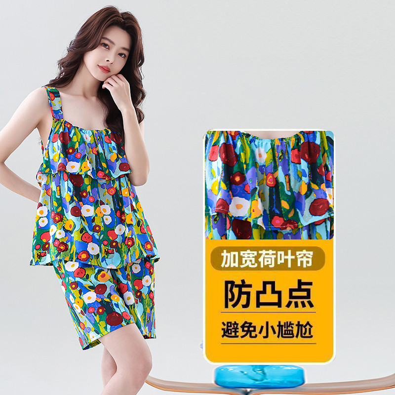两件套装 2025新款 背心棉绸睡衣短裤 女士无袖 吊带人造棉家居服 夏季