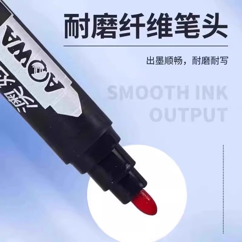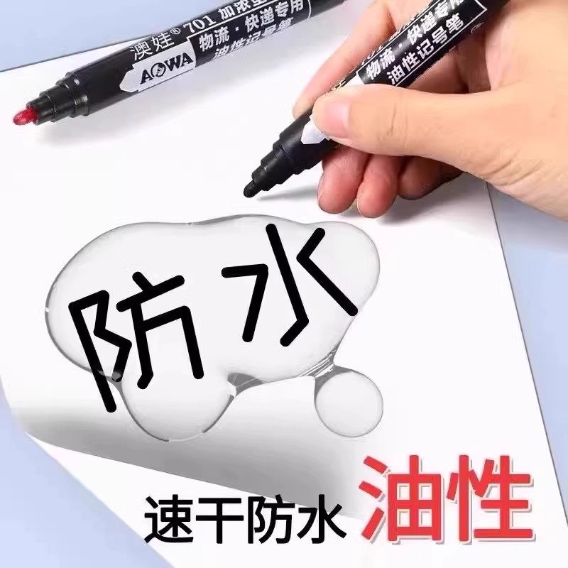 得力大双头油性记号笔黑色马克笔大头笔粗细防水防油不掉色红色勾线笔大号粗头加粗美术工地专用儿童油性笔