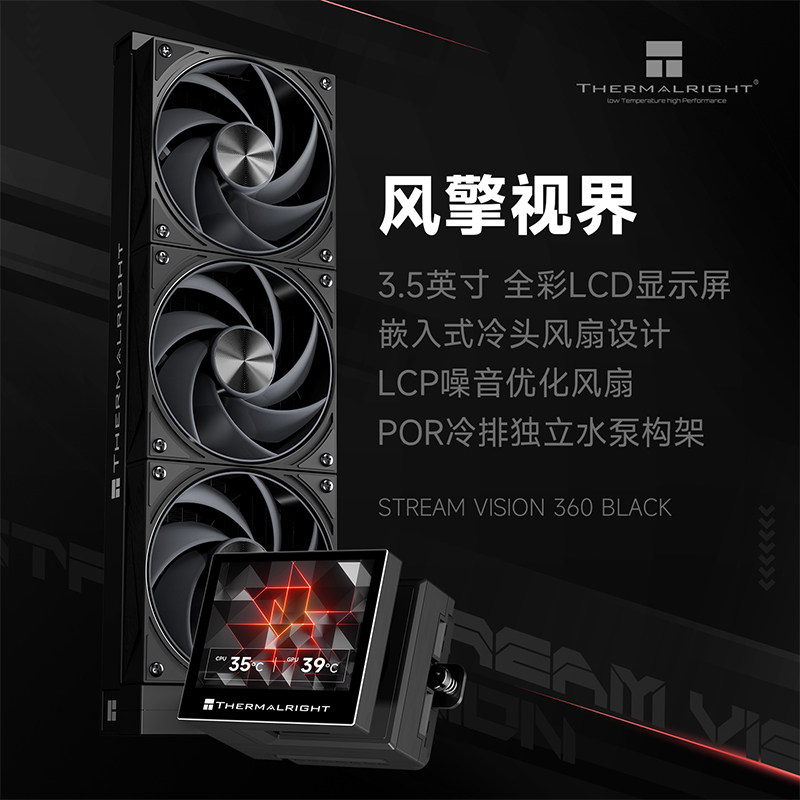 BLACK黑色风擎视界SV360一体式 360 水冷散热器 VISION 利民STREAM