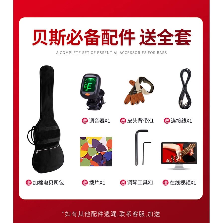 名森电贝司初学入门四弦电贝斯专业榆木贝斯bass套装 演出摇滚乐器